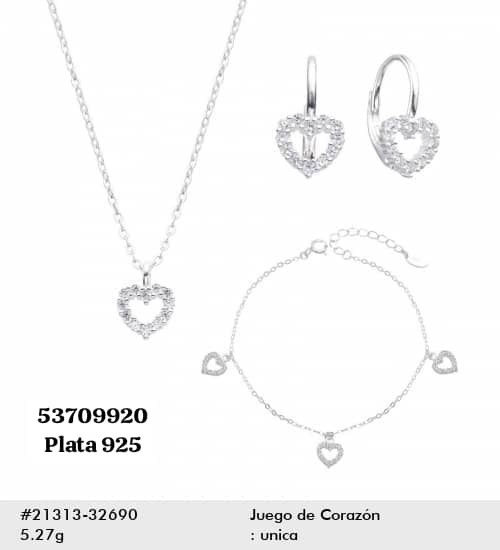 015 Conjunto de Plata 925 (Cadena, dije, argollas y manilla.)