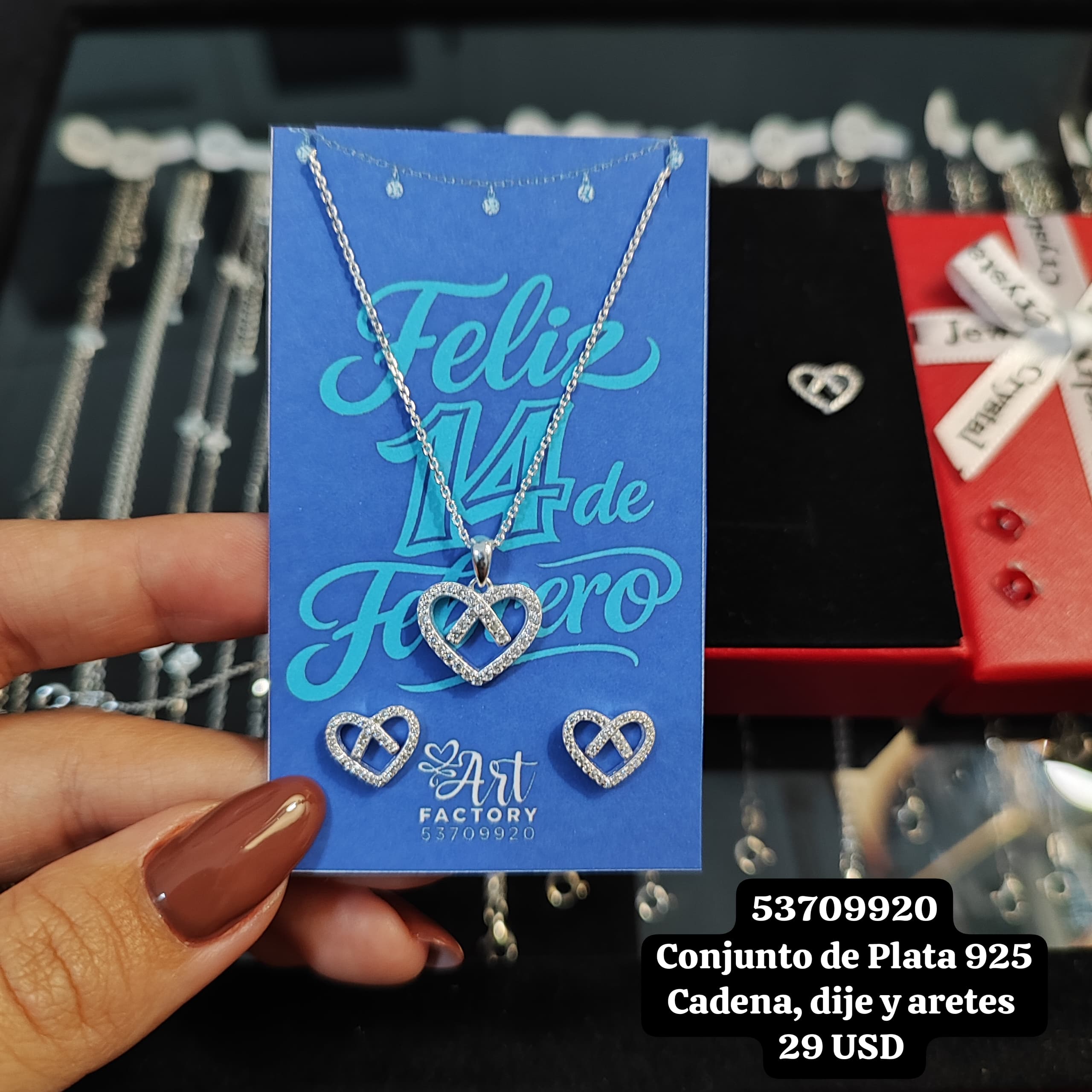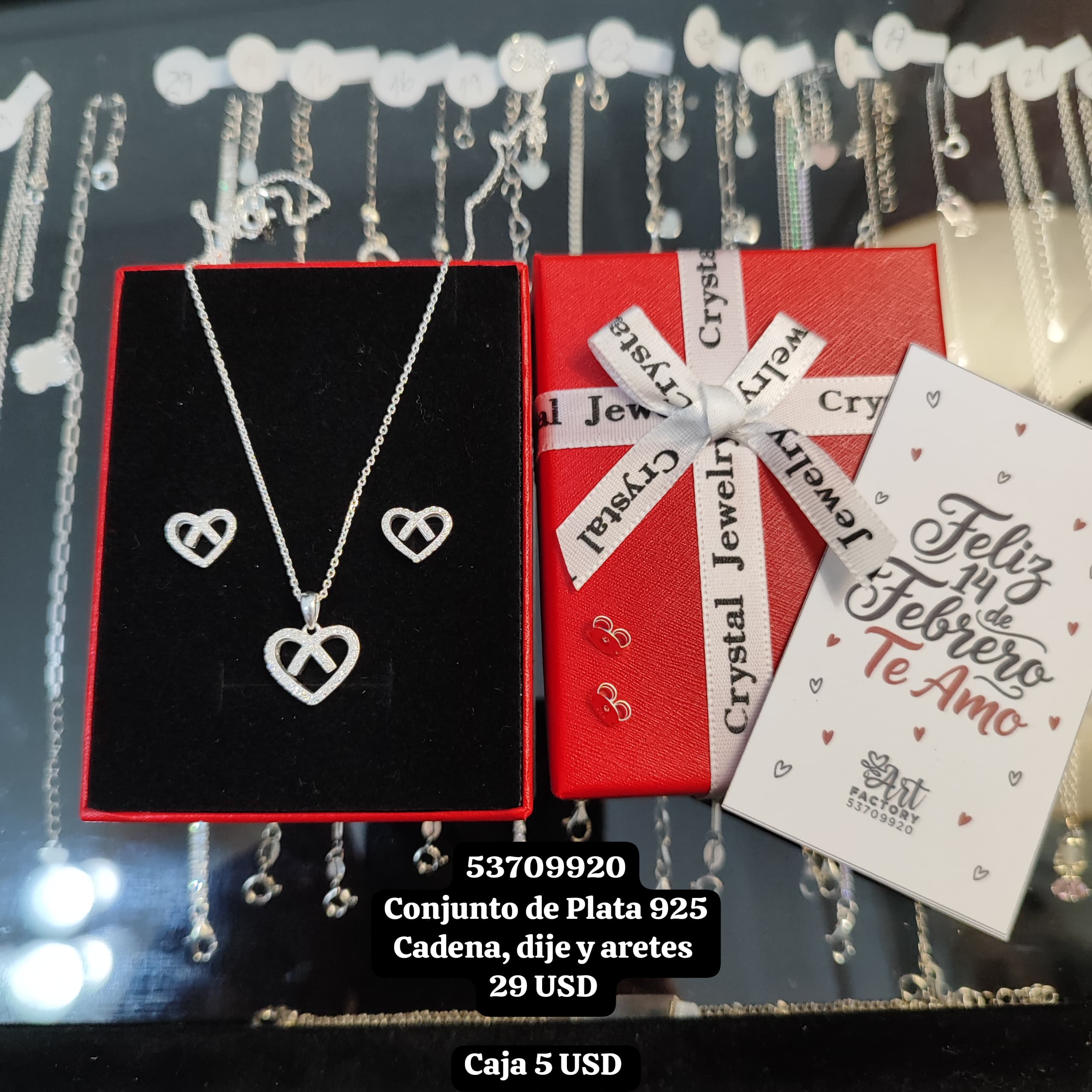 020 Conjunto de cadena, dije y aretes. USD o al cambio en cup. Plata 925