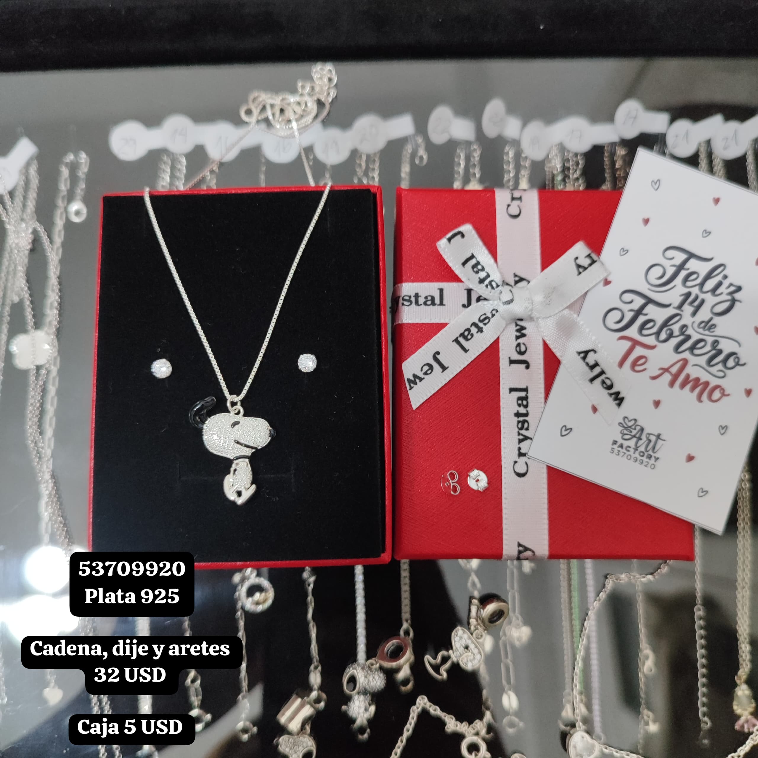 024 Conjunto de cadena, dije y aretes. USD o al cambio en cup. Plata 925