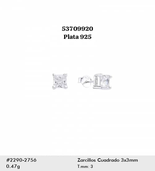 080 Aretes de 3×3 mm de Plata 925