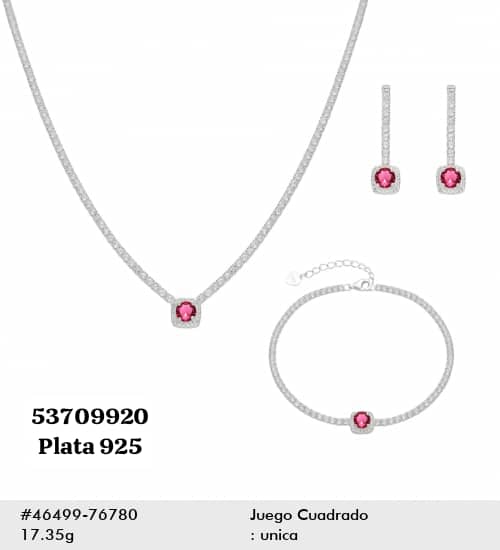 089 Conjunto de Plata 925 con circonias. (Cadena, dije, aretes y manilla.)
